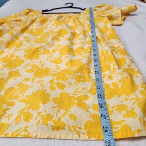 Lands End Blouse for Women Medium Yellow Relax fit Short Sleeve Square Neck