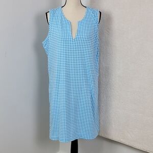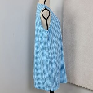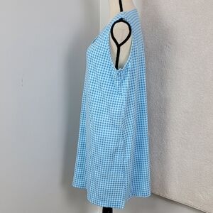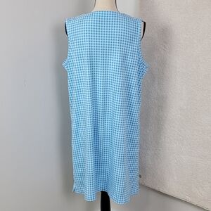 Lands' End Blue And White Gingham Check Sleeveless Jersey Swim Cover Up Dress XL