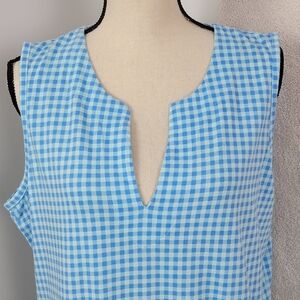 Lands' End Blue And White Gingham Check Sleeveless Jersey Swim Cover Up Dress