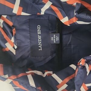Land's End Blue Brown White Geo Check Sleeveless Full Zip Down Puffer Vest 2x