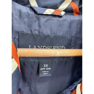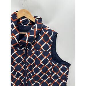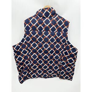 Land's End Blue Brown White Geo Check Sleeveless Full Zip Down Puffer Vest 3X
