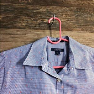 Lands' End Blue Button Down Shirt Classic Cotton Blend