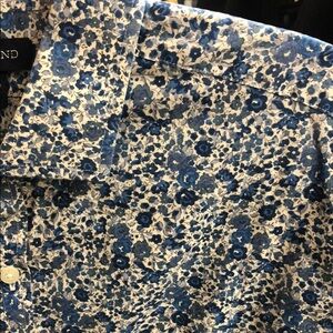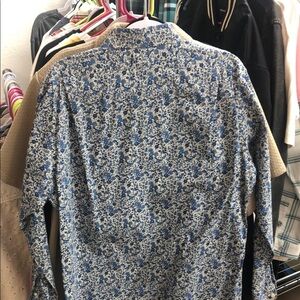 Lands' End Blue Casual Button Down Shirt with Floral Print