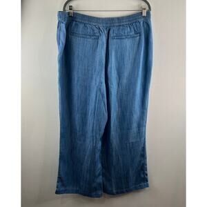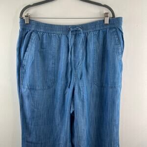 Lands' End Blue Chambray Pants High-Rise Elastic Waistband Wide-Leg Size 18 NEW