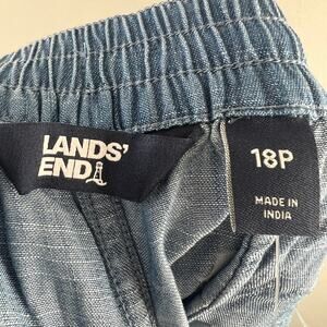 Lands' End Blue Chambray Pants High-Rise Elastic Waistband Wide-Leg Size 18P NEW