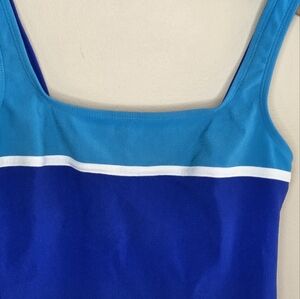 Lands' End | Blue Colorblock Square Neck Tankini Swim Top Shelf Bra.