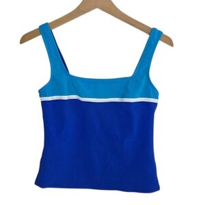 Lands' End | Blue Colorblock Square Neck Tankini Swim Top Shelf Bra Size 8