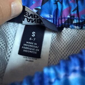 Land’s End Blue Cool Sharks Swim Trunks Shorts Drawstring Boys S 6-7 NWOT