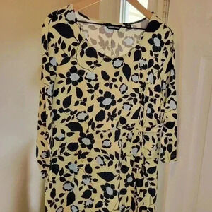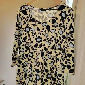 This Lands' End dress features a beautiful floral pattern in shades of ivory and blue. With a round neckline, long sleeves, and a knee-length hem, it's perfect for any occasion, whether you're traveling, going to work, or enjoying a casual day out. The dress is made of a soft and comfortable blend of spandex and cotton, ensuring a pleasant fit all day long.