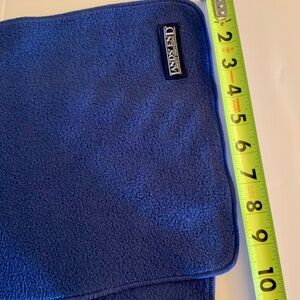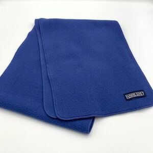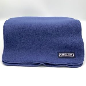 Lands End fleece scarf. Color blue, 100% polyester, machine washable. All edges bound and scarf is anti static.