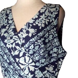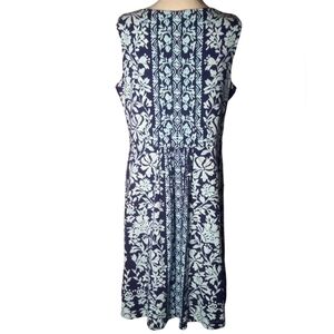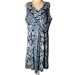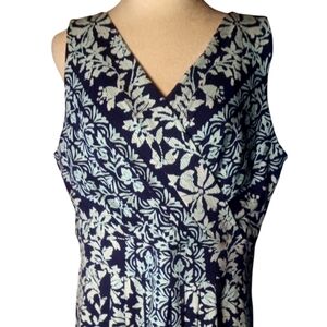 Lands End Blue Floral Botanical Print Fit & Flare Cotton Stretch Midi Size Large