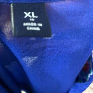 Lands End Blue Floral Embroidered Short Sleeve Top
