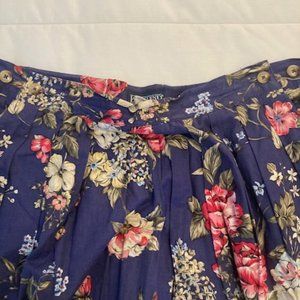 This women's Lands End blue flower skirt is a size 16 and is made out of 100% cotton. It is pleated with pockets and is 33 inches long. This skirt is in great condition with no rips, tears or stains.