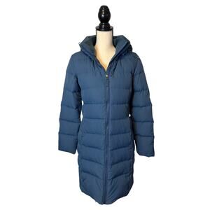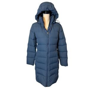 Lands' End Blue Full Zip Long Down Puffer Coat Womens Size XS Cozy Winter Jacket