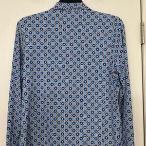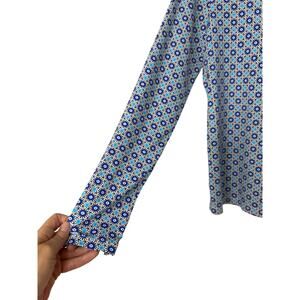 Land’s End Blue Geometric Print Swim Shirt Rashguard UPF 50 Small Beachy
