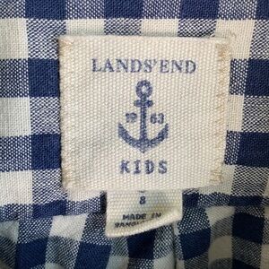 Lands' End Blue Gingham Button Up Shirt sz 8
