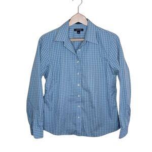 Lands' End | Blue Green Gingham Check No Iron Pinpoint Oxford Button Up Shirt