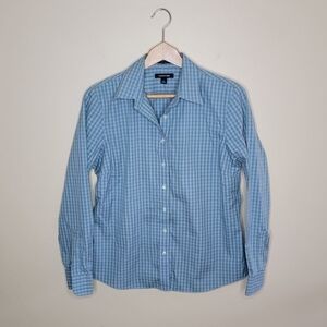 Blue and green Gingham checker button front shirt. No Iton Pinpoint Oxford style.