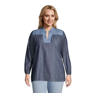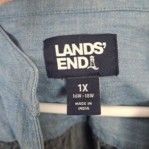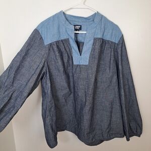 Lands End Blue Long Sleeve Casual Coastal Chambray Mix Peasant Top Size 1X