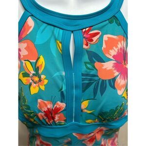 Lands End Blue Orange Floral Tummy Control Padded Size 10 DD