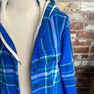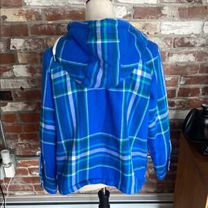 Lands' End Blue Plaid Fleece Hooded Jacket Size S/P 6/8
