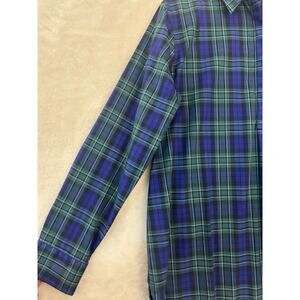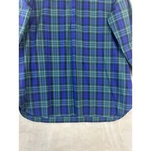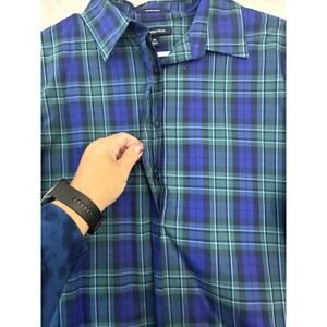 Lands' End Blue Plaid No Iron Supima Top 14 Large Half Button