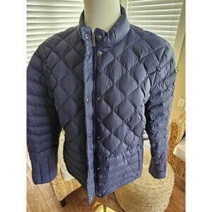 Lands' End Blue Quilted Down Puffer Coat Jacket Full Zip Women’s Sz MP EUC