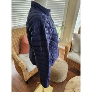 This jacket is so comfortable and lightweight. It's in excellent condition and comes from a clean and smoke free home. Please see measurements in photos.