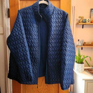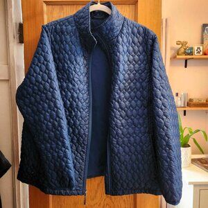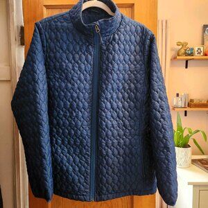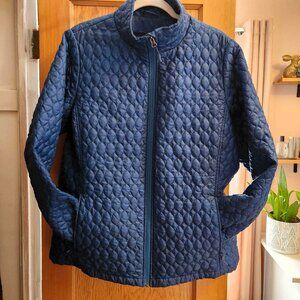 Details: This lightweight and packable quilted jacket from Lands' End is perfect for those in-between seasons. It will keep you warm without being too bulky or heavy. The jacket is a deep gem-toned blue and features a full-zip with functional pockets.