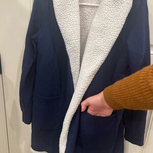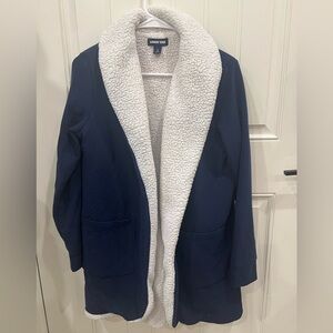 Lands' End Blue Small and White Teddy Jacket with Plush Sherpa Lining