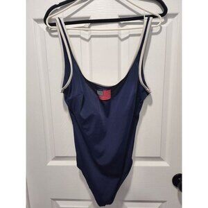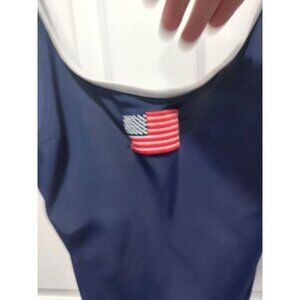 Lands End Blue Swim Bathing Suit One Piece American Flag Classic Size 18