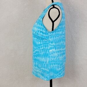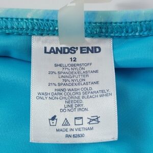 Lands' End Blue Watercolor Print Modest High Neckline Tankini Swim Top Sz 12