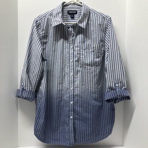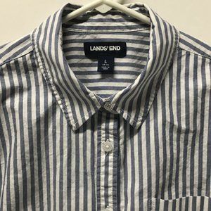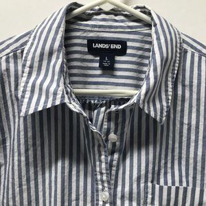 Lands' End Blue & White Striped Ombré Button Down Shirt