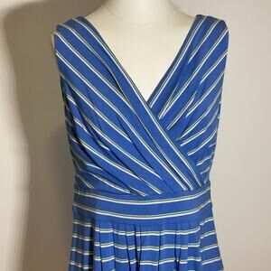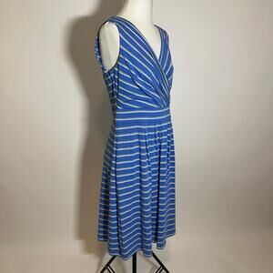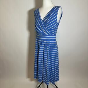 Lands End Blue & White Striped Surplice Sleeveless Dress Womens Size Medium M