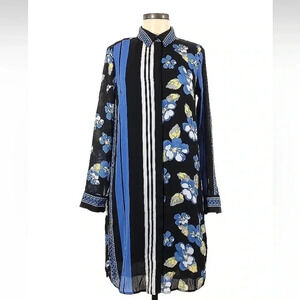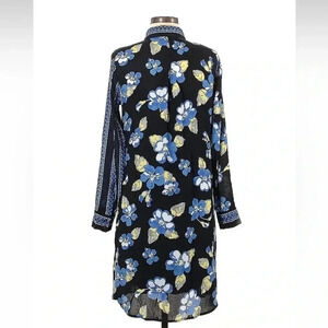 Lands’ End Blue Yellow Floral Long Sleeve Button Down Shirt Dress Size 6 Small