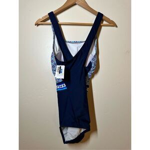 Lands End Blue and White Geometric Print One Piece Swimsuit Size Medium. New with tag.