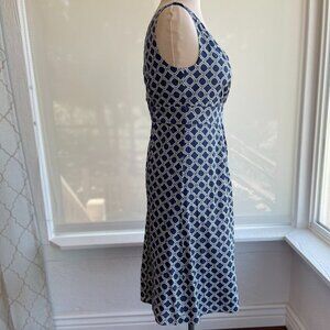 Land's End Blue/White Geometric Sleeveless V-Neck Dress NWT, Size 2