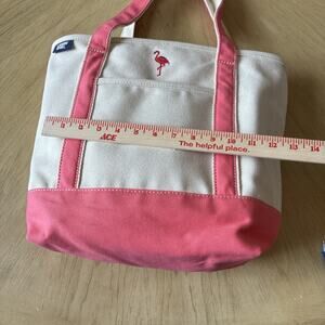 Lands End Boat Tote Large Canvas Bag 6 Pocket Pink Flamingo Embroidered Beach