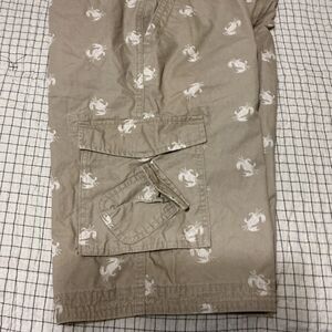 Lands End Boys 12H Cargo Shorts Khaki Crabs Nautical Summer Adjustable Waist EUC