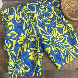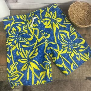 Land’s End Boys’ Blue/Yellow Tropical Print Swim Trunks With Liner Small 8