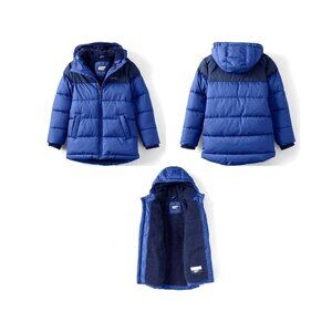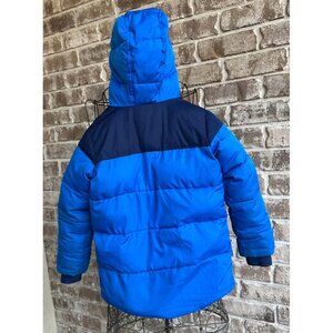 Lands End Boys Fleece Lined Coat Sz S Hooded Blue Zip Pockets Snow Ski R…