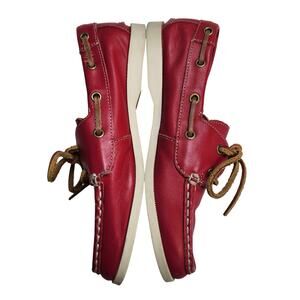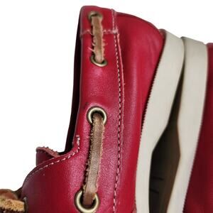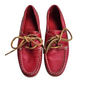 Lands End Boys Leather Boat Shoes Size 3 Red Leather Lace Up Loafers Preppy