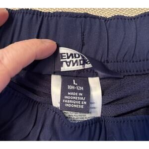 The Lands' End Boys Swim Trunks in size L Husky are a vibrant choice for young swimmers. Featuring a fun Electric Blue Burst Tie Dye pattern, these swim trunks are made from a blend of polyester and spandex for comfort and flexibility. The elastic waistband ensures a secure yet comfortable fit, while the hydroliner adds an extra layer of protection. Perfect for beach days, swimming, or poolside fun, these swim trunks are a stylish and practical choice for active boys.