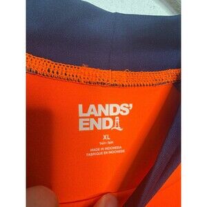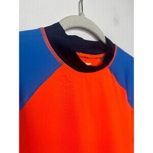 Lands’ End Boys XL Husky Rash Guard Colorblock Orange Blue Short Sleeve Swim Top