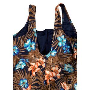 LANDS' END WOMEN'S TROPICAL MASTECTOMY SQUARE NECK TUGLESS TANK ONE PIECE SWIMSUIT