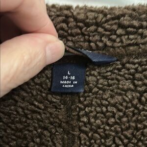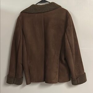 Cozy brown shearling jacket by Lands' End. Ideal for keeping warm.
