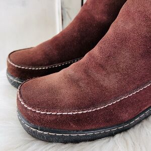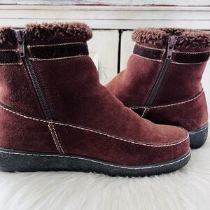 Lands End Brown Suede Faux Fur Lined Comfort Ankle Boots - Womens Size 8B