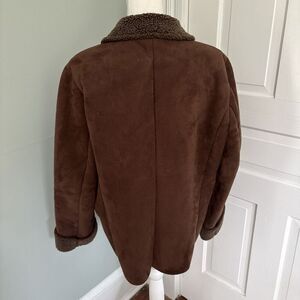 Lands' End Brown Suede-Like Shearling Soft Woman's Coat Jacket Large 14-16