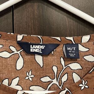 Lands’ End Brown White Leaf Print Tunic Medium Tall MT