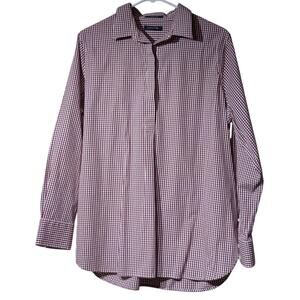 Lands' End Burgundy Check No Iron Supima Popover Long Sleeve Half Button Tunic